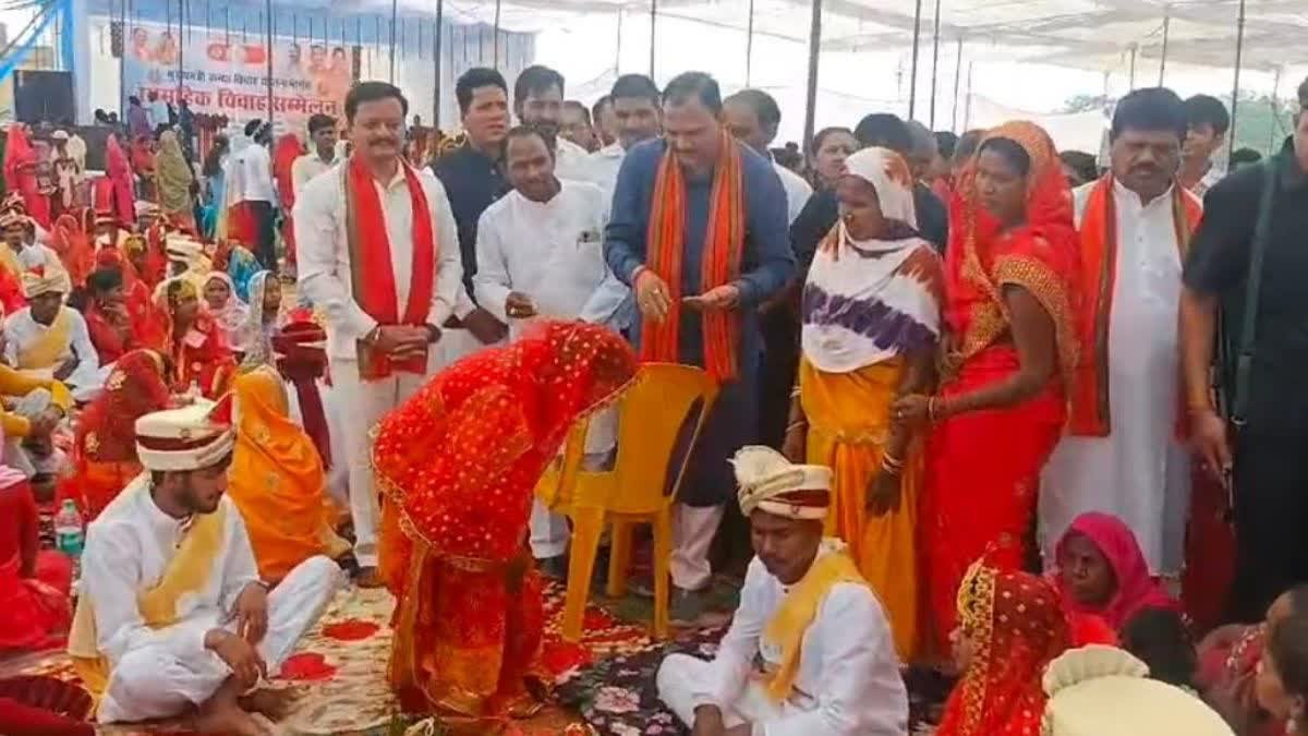 भव्य आयोजन में उमड़ा जनसैलाब: चिरमिरी के लाल बहादुर शास्त्री स्टेडियम में हजारों लोग इस आयोजन के साक्षी बने. विवाह कार्यक्रम में वर-वधू के परिवारजनों के साथ-साथ बड़ी संख्या में स्थानीय लोग भी मौजूद रहे. भोजन एवं अन्य सुविधाओं की बेहतरीन व्यवस्था की गई थी, जिससे नवविवाहित जोड़ों के परिवार बेहद प्रसन्न नजर आए.