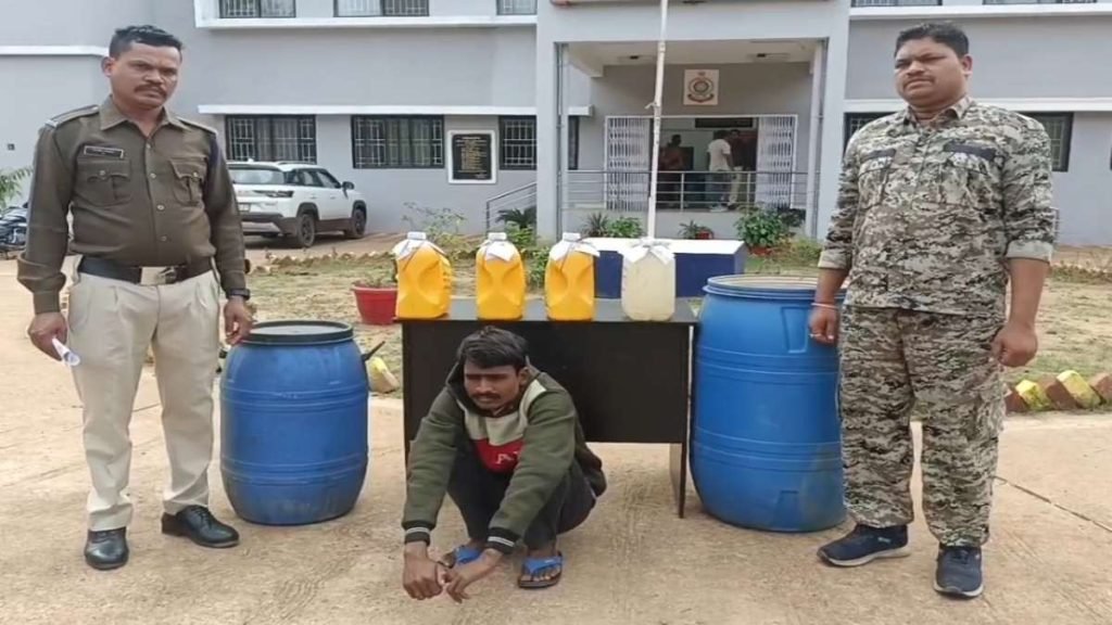 पुलिस की छापा मार कार्रवाई में 20 लीटर अवैध महुआ शराब किया जब्त, आरोपी गिरफ्तार
