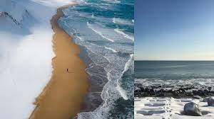 अनोखा बीच, जहां होता है समुद्र, बर्फ और रेत का संगम, तस्वीर मन मोह लेगी