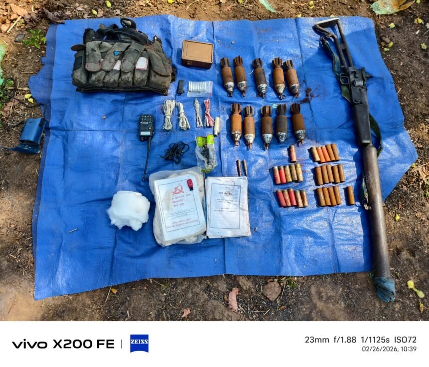 गरियाबंद, 28 फरवरी 2026। थाना मैनपुर अंतर्गत ग्राम बड़ेगोबरा के सांपसाटी नामक जंगल-पहाड़ी क्षेत्र में माओवादियों द्वारा डम्प कर रखे गए नगद, हथियार और इलेक्ट्रॉनिक सामान को जिला पुलिस बल गरियाबंद की ई-30 ऑप्स टीम तथा डीआरजी धमतरी की संयुक्त कार्रवाई में बरामद किया गया है।