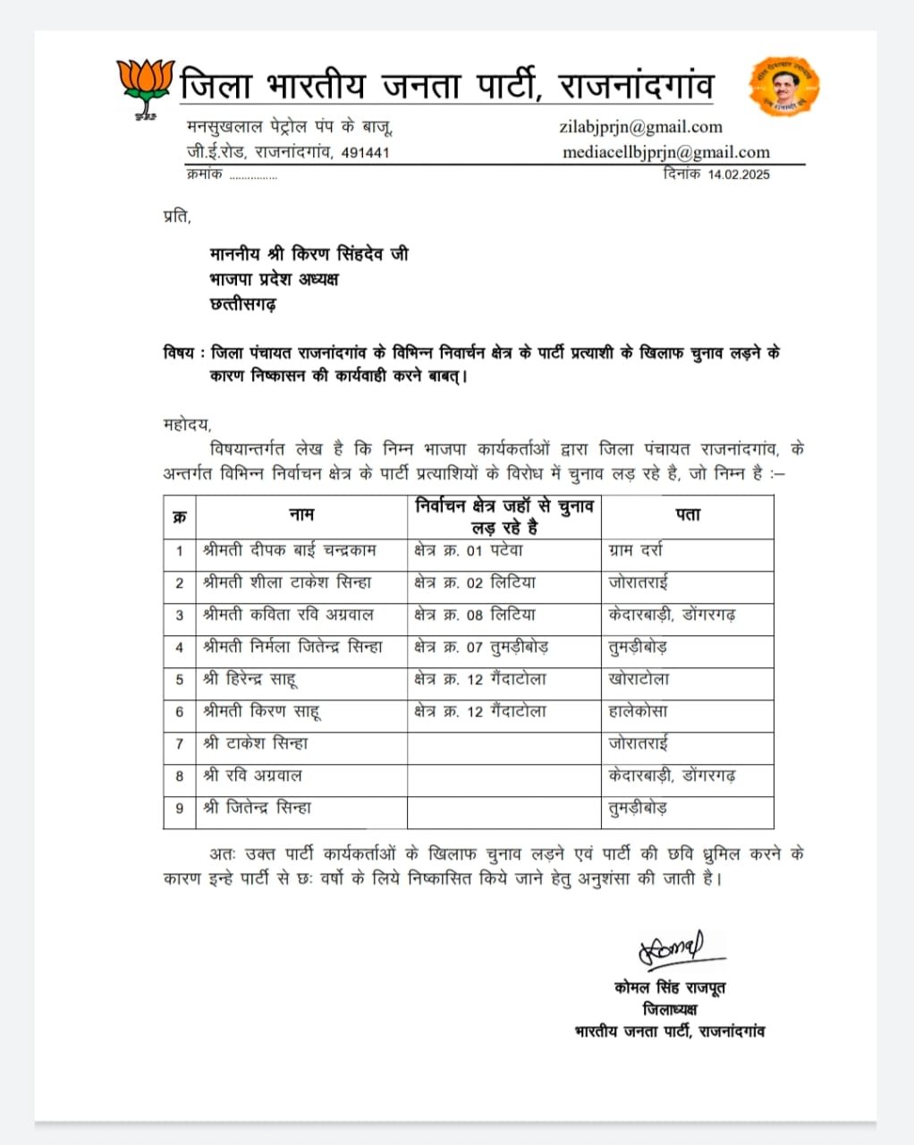 बागियों पर गिरी गाज, भाजपा ने निर्दलीय चुनाव लड़ने वाले 9 कार्यकर्ताओं को पार्टी से किया निष्कासित
