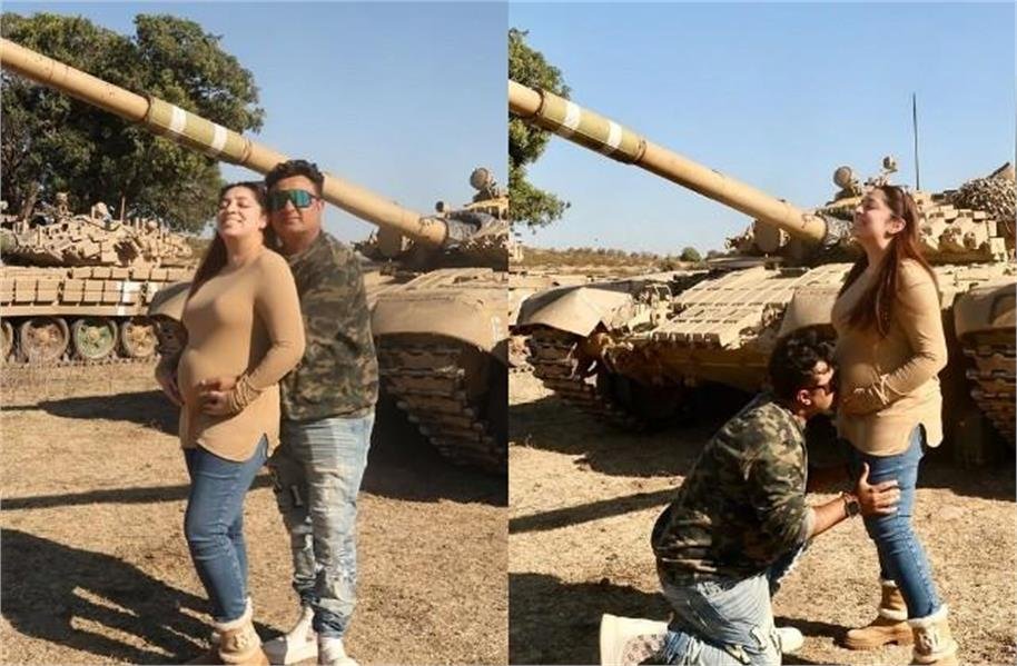 पहली तस्वीर में बिनॉय घुटने पर बैठकर निधि के बढ़ते बेबी बंप को प्यार से चूमते नजर आ रहे हैं। दूसरी तस्वीर में बिनॉय पीछे से निधि को थामे हुए हैं और दोनों उनके प्रेग्नेंट बेली को प्यार से सहला रहे हैं।