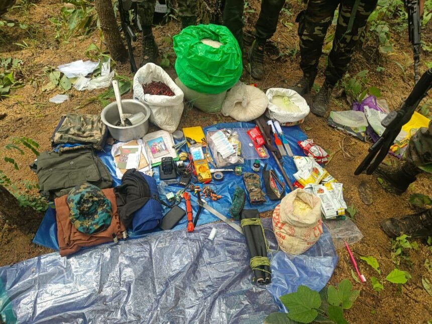 सर्च ऑपरेशन के दौरान बीडीएस टीम ने डम्प एरिया से स्टील कंटेनर से बने आईईडी बम, नक्सली साहित्य, बैनर, 57 नग पटाखा बम, इलेक्ट्रॉनिक वायर का बंडल, कॉर्डेक्स वायर, पावर बैंक, नक्सली वर्दी, सिंगल शॉट वैरल, छोटा सोलर प्लेट तथा अन्य दैनिक उपयोगी सामग्री बरामद की।