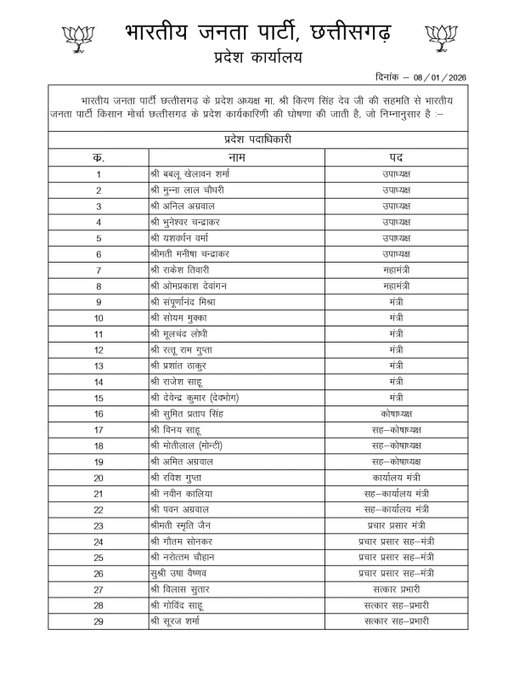 किरण सिंह देव ने बताया कि नई टीम से उम्मीद है कि वे किसानों के हितों के लिए पूरी ताकत से काम करेंगे। नीचे देखें लिस्ट…