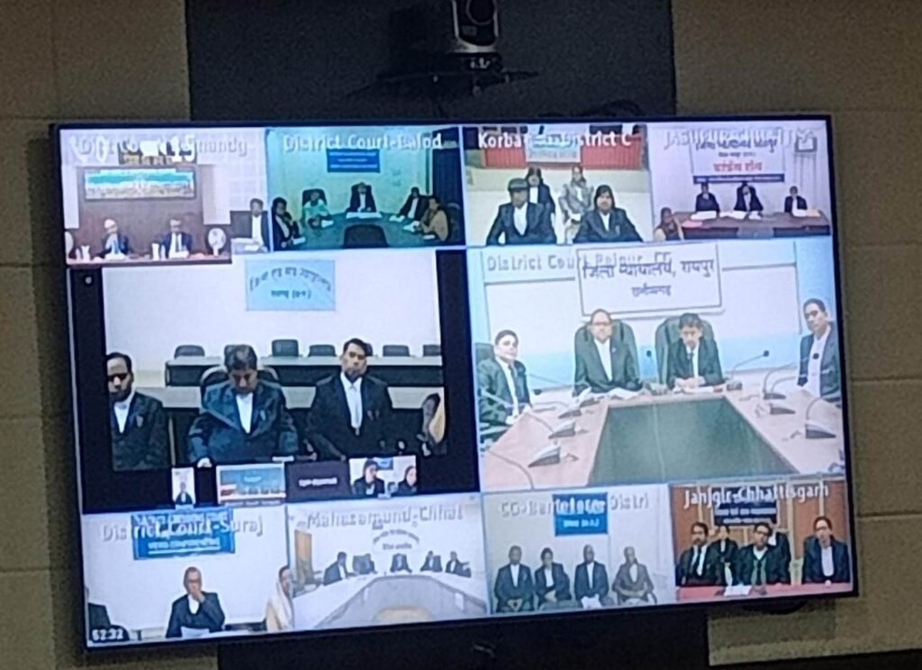 रायपुर, 29 फ़रवरी 2024|आगामी नेशनल लोक अदालत 9 मार्च की तैयारियों के संबंध में श्री न्यायमूर्ति रमेश सिन्हा, मुख्य न्यायाधीश, छत्तीसगढ़ उच्च न्यायालय/मुख्य संरक्षक, छत्तीसगढ राज्य विधिक सेवा प्राधिकरण एवं श्री न्यायमूर्ति गौतम भादु़़ड़ी, न्यायाधीश, छत्तीसगढ़ उच्च न्यायालय एवं कार्यपालक अध्यक्ष, छत्तीसगढ़ राज्य विधिक सेवा प्राधिकरण द्वारा संयुक्त रूप से छत्तीसगढ़ उच्च न्यायालय से वीडियो क्रॉन्फ्रेंसिंग के माध्यम से समस्त जिला विधिक सेवा प्राधिकरणांे के जिला न्यायाधीश, अध्यक्ष, सचिव, फैमिली कोर्ट के प्रधान न्यायाधीश, न्यायाधीश, स्थायी लोक अदालत के चेयरमेन, सीजेएम, लेबर जजों की वर्चुअल बैठक ली गई।
