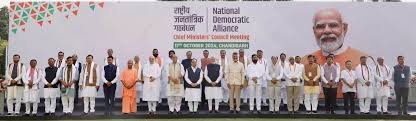 बैठक में भाजपा के 13 मुख्यमंत्री और 16 उपमुख्यमंत्री एवं महाराष्ट्र, आंध्र प्रदेश, बिहार, सिक्किम, नागालैंड और मेघालय के एनडीए सहयोगी दलों के मुख्यमंत्री भी मौजूद रहे. एनडीए के इस प्रमुख सम्मेलन का उद्देश्य राष्ट्रीय विकास, राज्यों के बीच समन्वय और सामूहिक समस्याओं के समाधान के लिए साझा प्रयासों पर चर्चा करना था. सम्मेलन की शुरुआत हरियाणा के नवनिर्वाचित मुख्यमंत्री नायब सिंह सैनी के शपथ ग्रहण के तुरंत बाद हुई. बैठक में प्रधानमंत्री के साथ भाजपा अध्यक्ष जेपी नड्डा, रक्षा मंत्री राजनाथ सिंह, गृह मंत्री अमित शाह, आंध्र प्रदेश के मुख्यमंत्री चंद्रबाबू नायडू और नागालैंड के मुख्यमंत्री नेफ्यू रियो भी प्रमुख रूप से उपस्थित रहे.