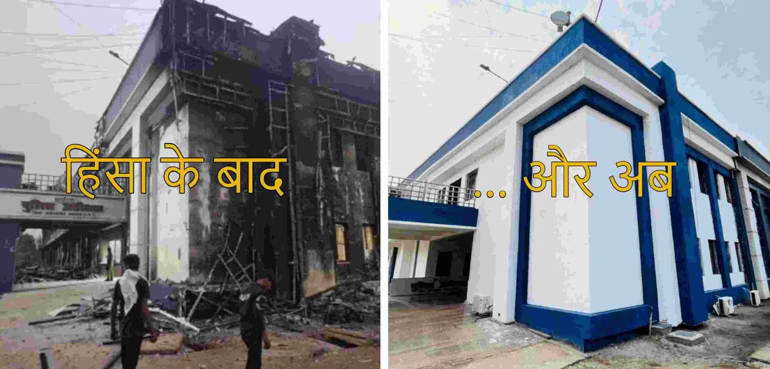 मुख्यमंत्री विष्णुदेव साय के निर्देश पर कलेक्टर दीपक सोनी ने व्यापक रणनीति बनाकर इस कार्य को अंजाम दिया है. जिसके तहत लोक निर्माण विभाग ने 24 घंटे कार्य कर इसे पूरा किया है. इसके साथ ही परिसर की सफाई सहित क्षति ग्रस्त जिला पंचायत कार्यालय एवं जिला निर्वाचन कार्यालय में भी शत प्रतिशत रेस्टोरेशन कार्य पूर्ण कर लिया गया है. रेस्टोरेशन के कार्य पूर्ण होने से कार्यालय में अलग सी चमक दिखाई दे रही है. रेस्टोरेशन कार्य के तहत निर्माण कार्य, पैराफिट, जली हुई एपीसी बोर्ड को हटाना, नया रेलिंग लगाना, पुट्टी के संग रंग रोगन, सीसीटीवी, ब्रांडबैंड, कांच बदलना, एसी, पंखे लगाना, लाइटिंग, जैसे अन्य महत्वपूर्ण कार्य किए गए हैं. बता दें, 15 और 16 मई की दरमियानी रात कुछ असामाजिक तत्वों ने गिरौधपुरी धाम में सतनामी समाज के धार्मिक स्थल के पूज्य जैतखाम में तोड़फोड़ की थी. मामले में कार्रवाई करते हुए पुलिस ने तीन आरोपियों को गिरफ्तार किया था. पुलिस की इस कार्रवाई से समाज के लोग असंतुष्ट थे और न्यायिक जांच की मांग कर रहे थे. इस बीच सोमवार को गृहमंत्री विजय शर्मा ने न्यायिक जांच की घोषणा की. वहीं जैतखाम में तोड़फोड़ के विरोध में हजारों लोग कलेक्ट्रेट के पास एकत्र हुए और जमकर हंगामा किया. जहां प्रदर्शन हिंसक हो गया. जिसके बाद उपद्रवियों ने तांडव मचाते हुए कलेक्टर और एसपी कार्यालय को आग के हवाले कर दिया. मामले में पुलिस अभी कार्रवाई कर रही है.