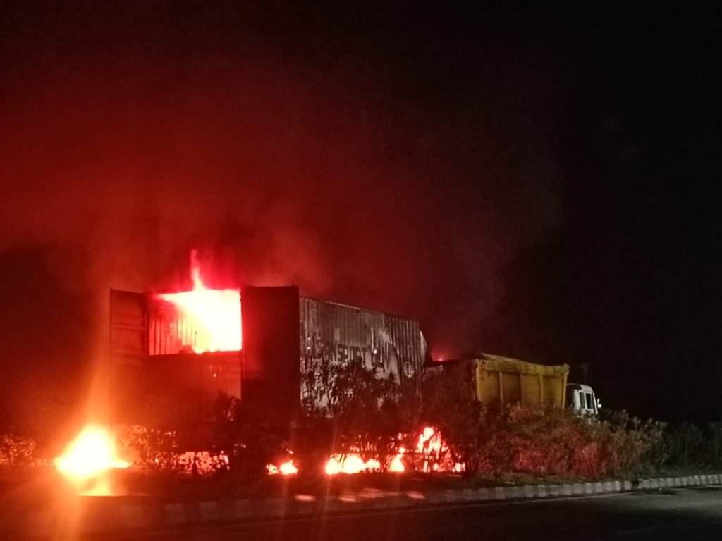 नेशनल हाईवे पर खड़े ट्रक से कंटेनर की टक्कर, जोरदार धमाके से 2 लोग जिंदा जले