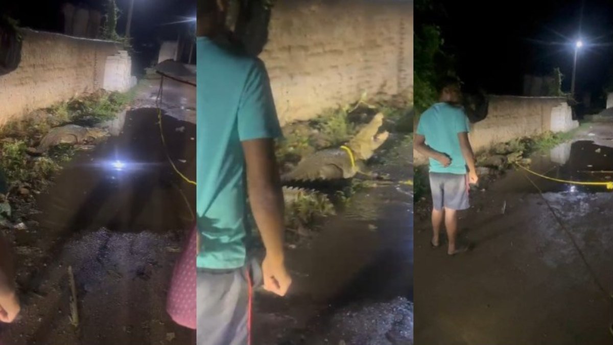 सड़क पर अचानक आ गया मगरमच्छ, लोगों में मची अफरा-तफरी