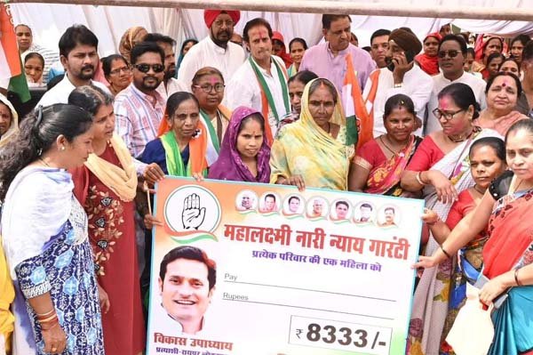 विकास उपाध्याय ने बताया कि कांग्रेस पार्टी ने महिलाओं की आर्थिक स्थिति को सुधारने के लिए महिलाओं को ताकत देने के लिए एवं प्रत्येक नारी को न्याय मिले इसके लिए भारत देश के समस्त परिवारों की महिला को महालक्ष्मी नारी न्याय गारंटी योजना देने की घोषणा की है। उसी गारंटी को पूरा करने आज रायपुर लोकसभा अंतर्गत चार विधानसभा के लगभग 10 से अधिक स्थानों में इस योजना का शुभारंभ हमारी माताओं बहनों के बीच किया गया। जिसमें पश्चिम विधानसभा के कबीर चौक मोहबा बाजार चौक शर्मा कोल्ड स्टोरेज दक्षिण विधानसभा के लाखेनगर चौक कालीबाड़ी चौक हरदेववाला मंदिर के सामने कटोरा तालाब उत्तर विधानसभा के गुरूनानक चौक मंडी गेट ग्रामीण विधानसभा के मोवा एफसीआई के पास सतनाम भवन साँई मंदिर गुरुद्वारे के पास महावीर नगर अमलीडीह इत्यादि स्थानों में कांग्रेस पार्टी की महालक्ष्मी नारी न्याय गारंटी योजना के तहत् महिला बहनों के खातों में सीधा 8333 रुपए प्रति माह मतलब एक लाख प्रति वर्ष देने की गारंटी का शुभारंभ किया।
