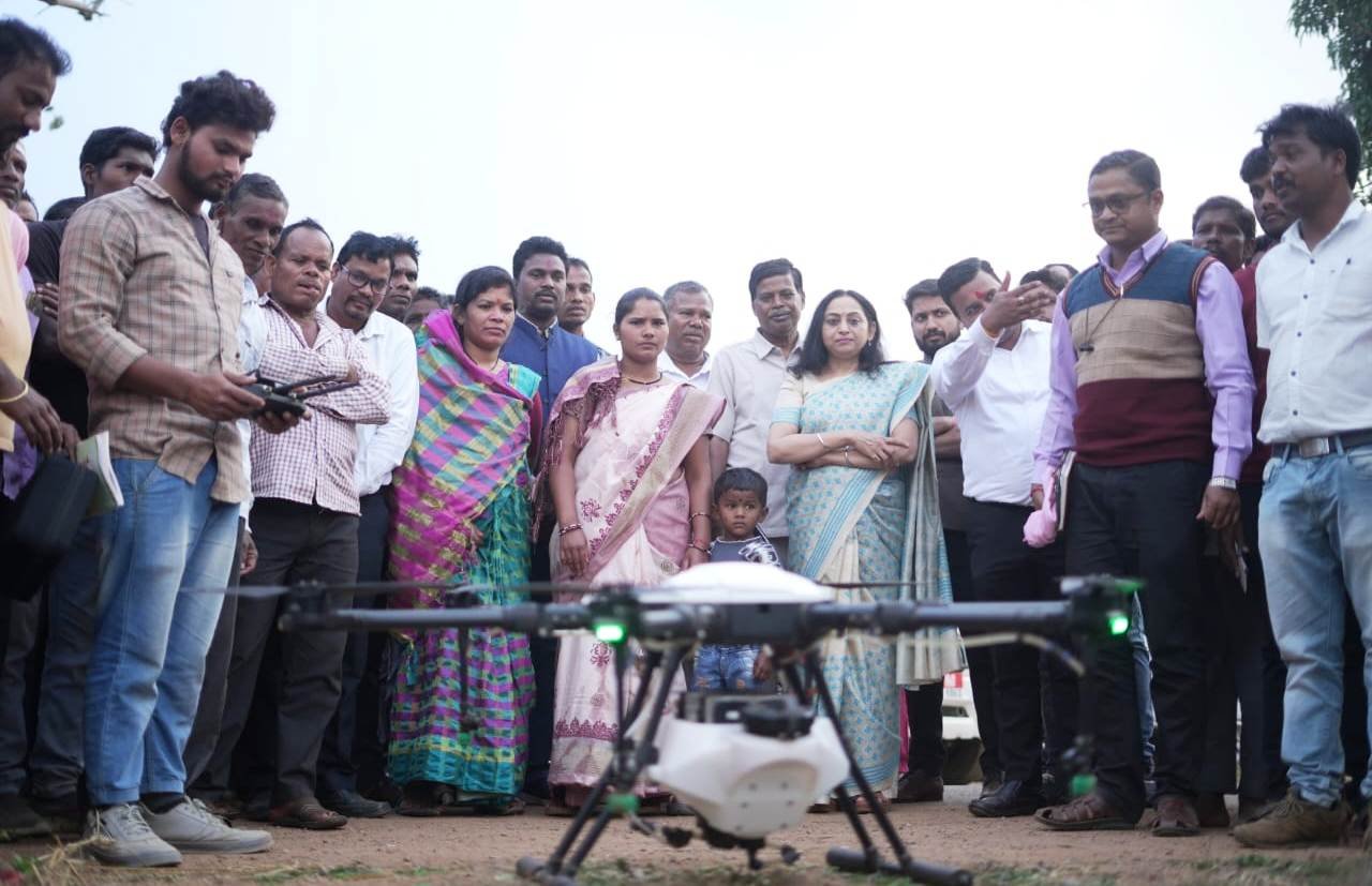 विकसित भारत संकल्प यात्रा: भारत सरकार की संयुक्त सचिव ने जोडेकेरा में किसानों के संग देखी ड्रोन द्वारा कृषि की तकनीक