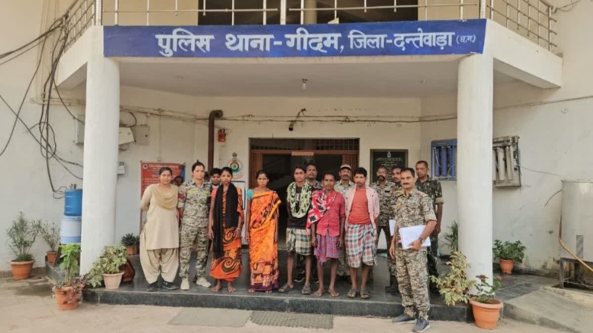 बस्तर फाइटर्स और डीआरजी को मिली कामयाबी : थाना गीदम क्षेत्र में प्रतिबंधित माओवादी संगठन के सक्रिय सदस्यों की उपस्थिति की सूचना पर डीआरजी और बस्तर फाइटर्स की टीम के नियमित गश्त एवं चेकिंग कर रही थी. तभी 28 मार्च को मुखबिर की सूचना पर तुमनार नदी घाट के पास कुछ माओवादियों की उपस्थिति की तस्दीक करने के लिए दंतेवाड़ा DRG और बस्तर फाइटर्स की टीम रात को निकली. वापसी के दौरान सुबह नेलगोड़ा तुमनार के नदी घाट के पगडंडी के पास जैसे ही टीम पहुंची. पुलिस बल को देखकर कुछ लोग छिपने लगे. जिन्हें घेराबंदी कर मौके पर ही दो महिलाओं सहित पांच लोगों को पकड़ा गया. जिन्होंने पूछताछ करने पर बताया कि सभी आईईडी लगाने के लिए रेकी कर रहे थे.