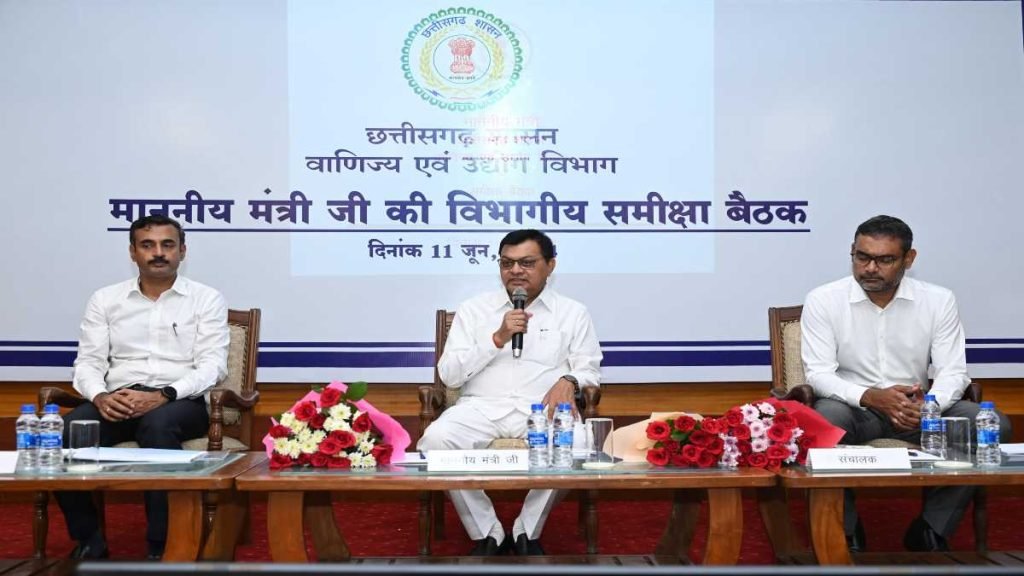 मंगलवार को सर्किट हाऊस रायपुर में प्रदेश के सभी जिलों के उद्योग और व्यापार केन्द्र के प्रबंधकों, सीएसआईडीसी के अधिकारियों व उद्योग संचालनालय के उच्च अधिकारियों की बैठक लेकर उद्योग मंत्री देवांगन ने इस आशय के निर्देश दिए। बैठक में उद्योग विभाग के सचिव अंकित आनंद, संचालक उद्योग पी. अरुण प्रसाद सहित जिलों से आए अधिकारी एवं उद्योग संचालनालय के अधिकारी उपस्थित थे।