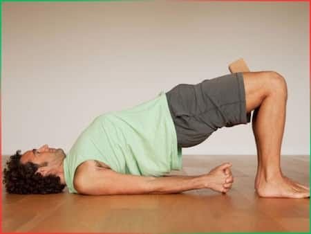 इसे सेतु बंधासन भी कहते हैं। इसके लिए सबसे पहले योगा मेट पर पीठ के बल लेट जाएं। अब अपने घुटनों को मोड़ लें। पैरों को जमीन पर सपाट रखें। अपनी हथेलियों को नीचे की ओर रखते हुए अपने हाथों को बगल की ओर फैलाएं। ध्यान रखें कि अपने पैरों को हिप्स की चौड़ाई से अलग रखें। आपकी उंगलियां एड़ियों के पिछले हिस्से पर टिकी होनी चाहिए। धीरे-धीरे अपनी सांस छोड़ते हुए, अपने हिप्स को ऊपर उठाएं यानी अपनी पीठ को फर्श से दूर उपर की ओर करें। घुटनों को 90 डिग्री के कोण पर रखे और जांघों को फर्श के पैरेलल रखें। बॉडी वेट कंधों, हिप्स और पैरों पर समान रूप से रखें। इस स्थिति में 30 सेकंड से 1 मिनट तक रहें। धीरे-धीरे सांस लेते हुए, अपने हिप्स को वापस नीचे लाएं और आराम करें।