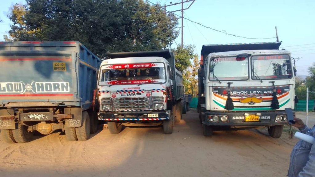 अवैध खनन और परिवहन , 11 हाइवा और 8 ट्रैक्टर जब्त