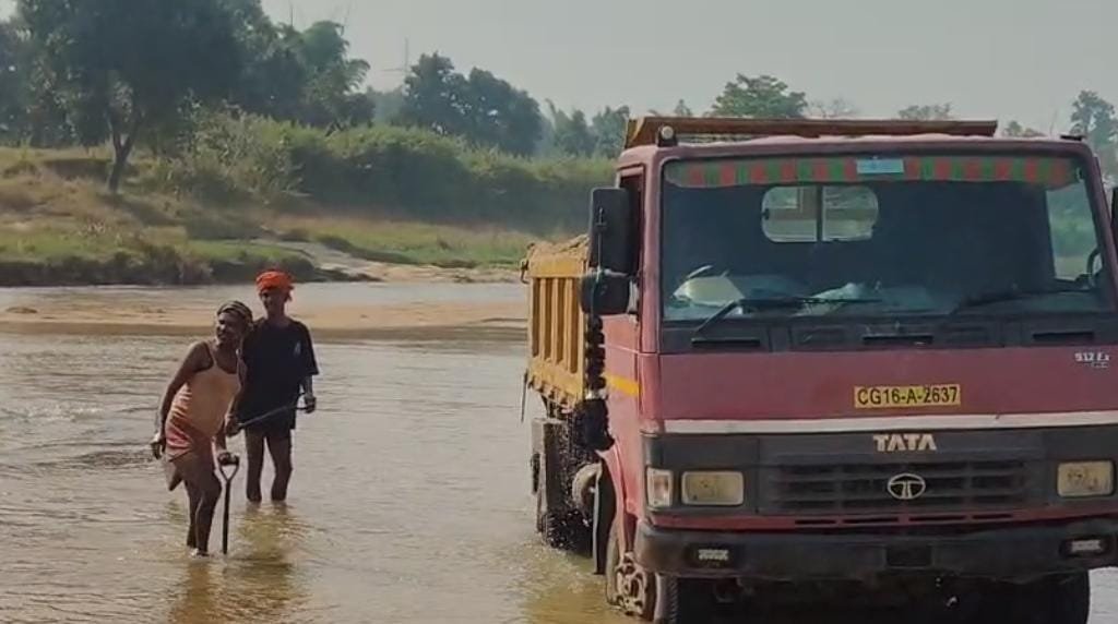 कोरिया में रेत का अवैध परिवहन, चिरमी नदी में तड़के सुबह से देर रात तक बालू निकासी