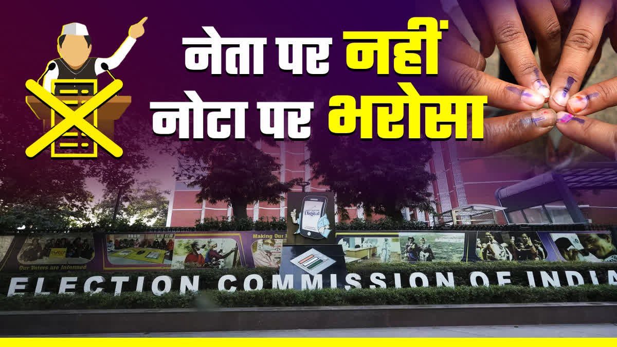 नेता को नहीं नोटा पर डाला वोट: मतदान प्रतिशत बढ़ाने के लिए चुनाव आयोग लगातार अभियान चलाता रहा है. इस बार लोकसभा चुनाव के दौरान भीषण गर्मी के चलते भी मतदान का प्रतिशत घटा. लेकिन नेताओं और चुनाव आयोग की चिंता अब इस बात से है कि नोटा का बटन दबाने वालों की संख्या लगातार बढ़ रही है.
