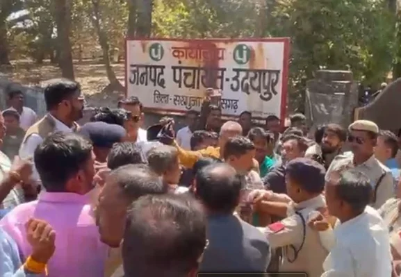 सरगुजा। उदयपुर जनपद पंचायत अध्यक्ष और उपाध्यक्ष के चुनाव के दौरान भाजपा, कांग्रेस और गोंडवाना गणतंत्र पार्टी (GGP) के समर्थकों के बीच जमकर धक्का-मुक्की और गाली-गलौज हुई। जनपद सदस्यों के पहुंचते ही विवाद इतना बढ़ गया कि नौबत मारपीट तक आ गई। हालात बेकाबू होते देख पुलिस को हस्तक्षेप करना पड़ा, जिसके बाद सभी सदस्यों को जनपद सभा में पहुंचाया गया।