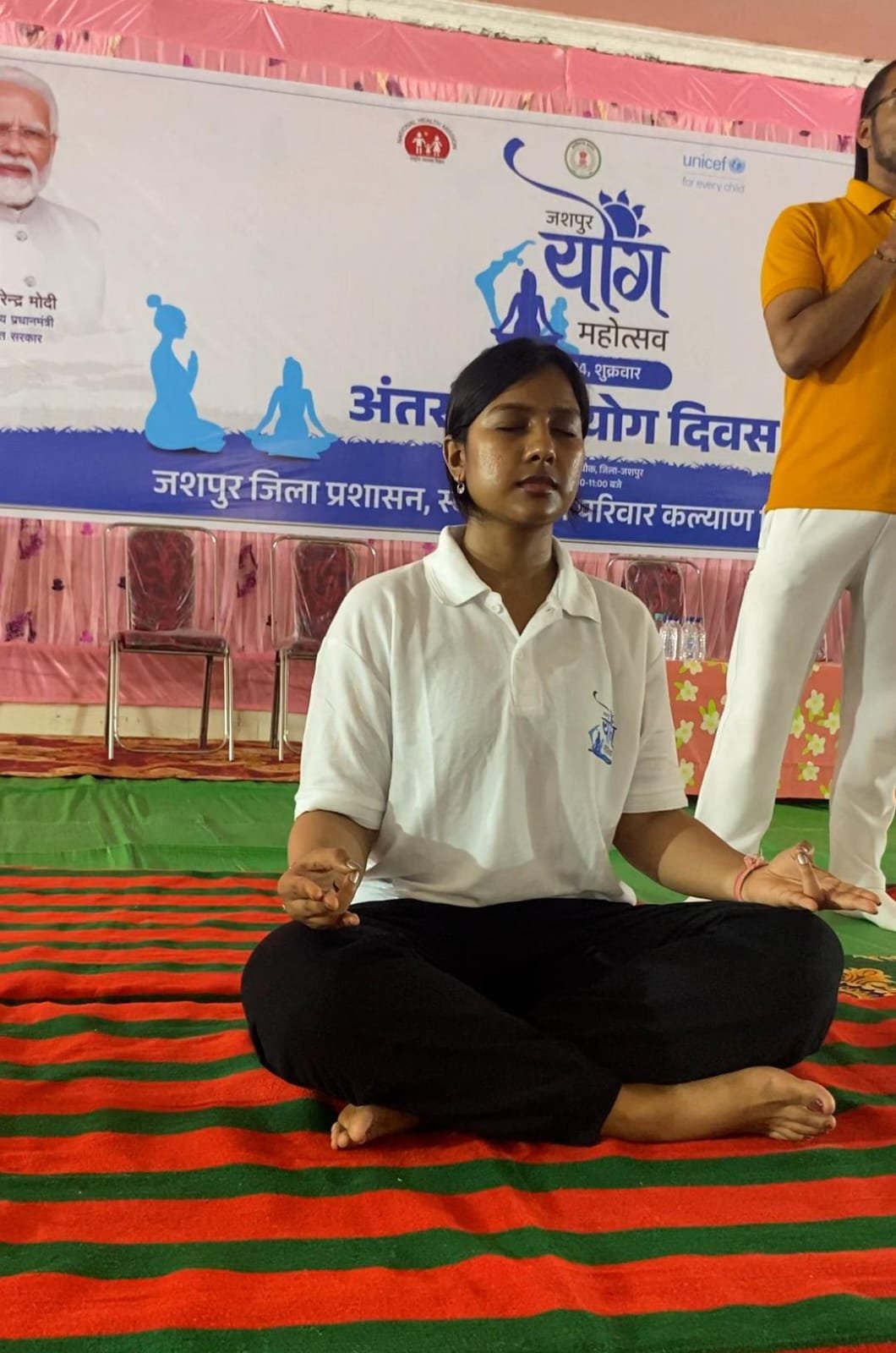 गर्भवती महिलाओं के मानसिक एवं शारीरिक स्वास्थ्य के लिए योग अत्यंत महत्वपूर्ण है। योग के इसी महत्व को ध्यान में रखते हुए गर्भवती महिलाओं को योग कराया गया। जशपुर योग महोत्सव कार्यक्रम मुख्यमंत्री श्री विष्णु देव साय की पुत्री स्मृति साय के संरक्षण में आयोजित हुआ। स्मृति साय कार्यक्रम में मुख्य अतिथि के तौर पर उपस्थित हुईं। जशपुर जिला प्रशासन और यूनीसेफ टीम के संयुक्त प्रयास से इस कार्यक्रम का आयोजन किया गया।