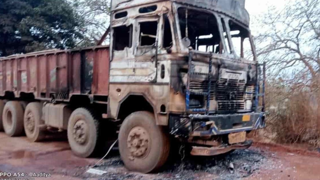 नारायणपुर में नक्सलियों का तांडव :  माइंस के चार ट्रक वाहनों में की आगजनी, इलाके में दहशत