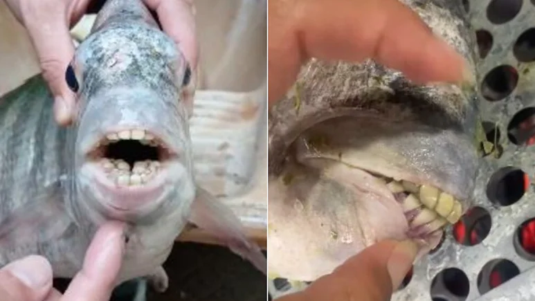 इंसानों जैसे दांतों वाली अजीबोगरीब मछली को देख लोगों के उड़े होश