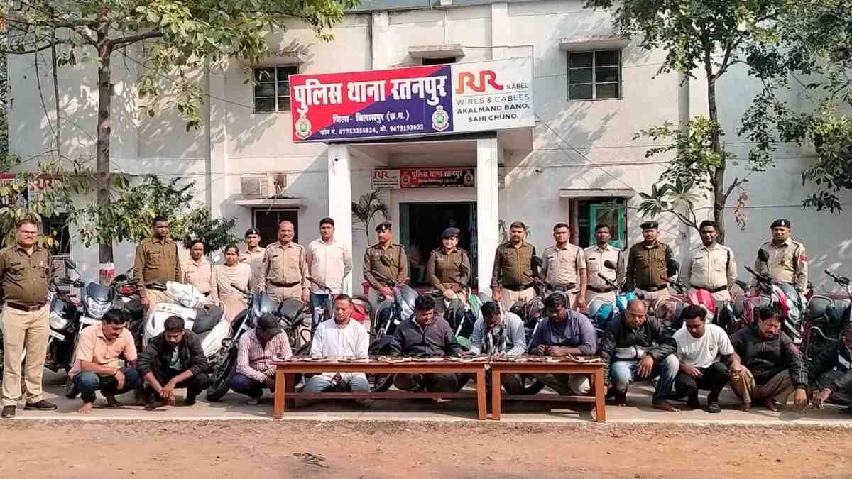 , पुलिस को मुखबिर से सूचना मिली थी कि कोरबी के जंगल में 52 परियों पर कुछ लोग दांव लगा रहे हैं. रतनपुर थाना पुलिस ने टीम गठित कर जंगल में छापा मारा. मौके से पुलिस ने कैश, बाइक के साथ 11 लोगों को गिरफ्तार किया.