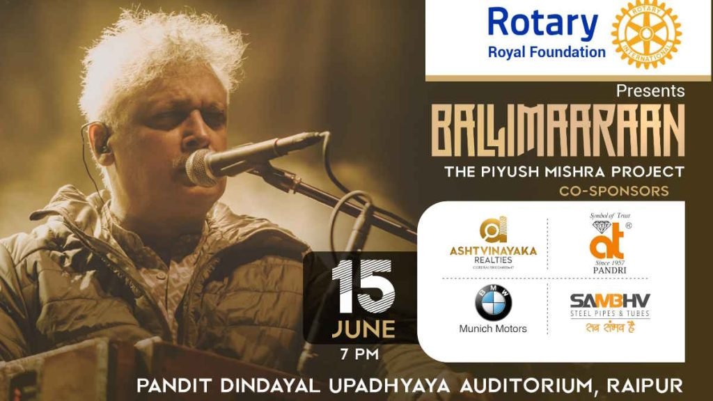रायपुर रॉयल और रायपुर क्वींस रोटरी क्लब लेकर आए हैं पीयूष मिश्रा लाइव इन कॉन्सर्ट ‘बल्लिमरान’