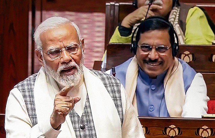 प्रधानमंत्री नरेंद्र मोदी ने अपनी सरकार के 10 साल के कार्यकाल को बड़े व निर्णायक फैसलों वाला करार देते हुए बुधवार को कहा कि अगले पांच साल में आत्मनिर्भर भारत का अभियान नयी ऊंचाई पर होगा। राज्यसभा में राष्ट्रपति के अभिभाषण पर धन्यवाद प्रस्ताव पर चर्चा का जवाब देते हुए प्रधानमंत्री ने लोकसभा चुनाव में जीत के साथ तीसरा कार्यकाल मिलने का भरोसा जताया, वहीं कांग्रेस पर जमकर निशाना साधा। प्रधानमंत्री ने कांग्रेस को आरक्षण का ‘जन्मजात विरोधी’ और उसकी सोच को ‘आउटडेटेड’ (पुरानी) बताया। उन्होंने कहा कि कांग्रेस दलितों, पिछड़ों, आदिवासियों के खिलाफ रही है और अगर बाबासाहेब अंबेडकर नहीं होते तो उन्हें कोई आरक्षण भी नहीं मिलता। मोदी ने कहा कि कांग्रेस के 10 साल में भारतीय अर्थव्यवस्था विश्व की पांच नाजुक अर्थव्यवस्थाओं में शुमार थी, उसके कार्यकाल को नीतिगत पंगुता के लिए याद किया जाता है। वहीं दूसरी तरफ पिछले 10 साल में भारत दुनिया की पांच शीर्ष अर्थव्यवस्थाओं में शामिल हो गया है। प्रधानमंत्री ने कांग्रेस पर गुलामी की मानसिकता को बढ़ावा देने का आरोप लगाते हुए कहा कि उसने इस तरह का माहौल बनाया कि भारतीय परंपराओं का पालन करने वालों को हेय नजरों से देखा गया।