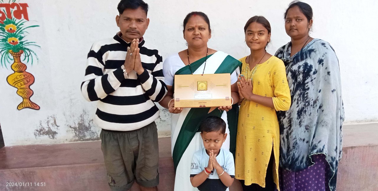 उत्तर बस्तर कांकेर जिले की जनपद पंचायत नरहरपुर के भगतसिंह वार्ड क्रमांक 05 में रहने वाली श्रीमती संतोषी दुर्गा को अयोध्या में आगामी 22 जनवरी को श्रीराम की मूर्ति की होने वाली प्राण-प्रतिष्ठा के लिए आमंत्रण मिला है। श्रीमती संतोषी इस आमंत्रण से इतनी भावविभोर हो गईं कि उनकी आंखों से खुशियों का सैलाब उमड़ पड़ा। उन्होंने इसके लिए प्रधानमंत्री श्री नरेन्द्र मोदी और उत्तरप्रदेश के मुख्यमंत्री योगी आदित्यनाथ का कोटि-कोटि साधुवाद करते हुए कहा कि मॉर्च्युअरी में छोटी सी नौकरी करने वाली के काम को इतना बड़ा सम्मान मिला। वे अतिसौभाग्यशाली हैं, जहां बड़े-बड़ों को आमंत्रण नहीं मिला, वहीं उनको प्रभु श्रीरामलला का बुलावा आया।