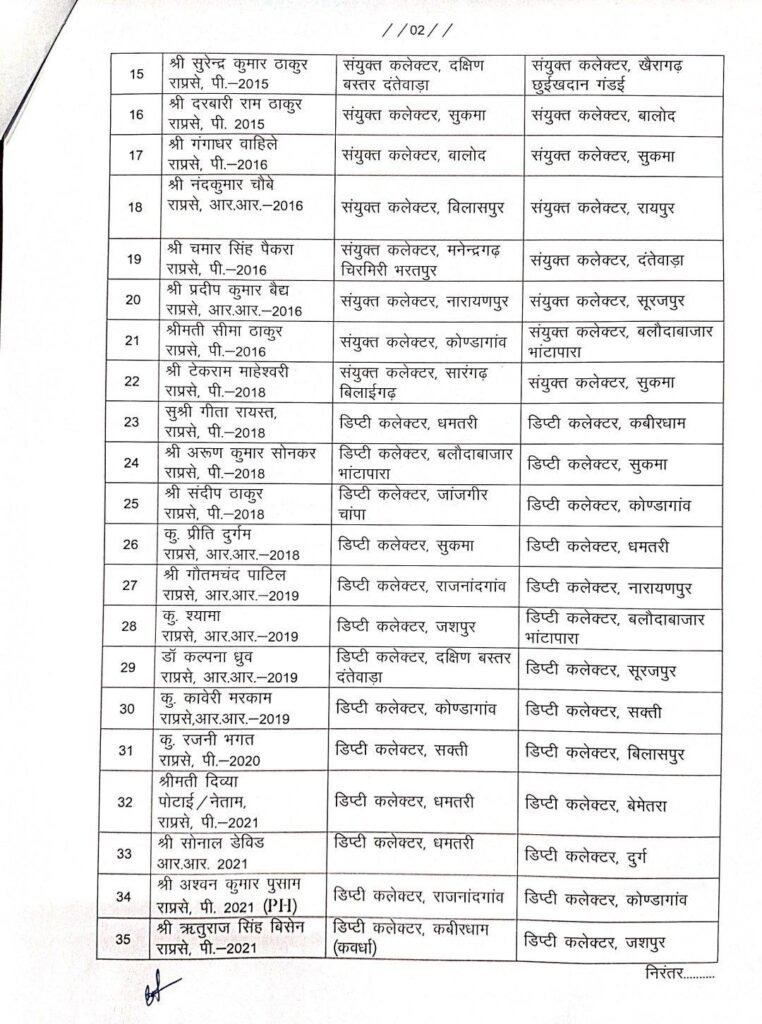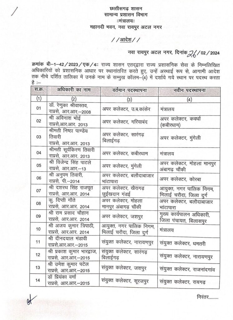 CG में राज्य प्रशासनिक सेवा के अधिकारियों का तबादला : 49 राज्य प्रशासनिक सेवा के अधिकारियों का हुआ तबादला, देखें लिस्ट