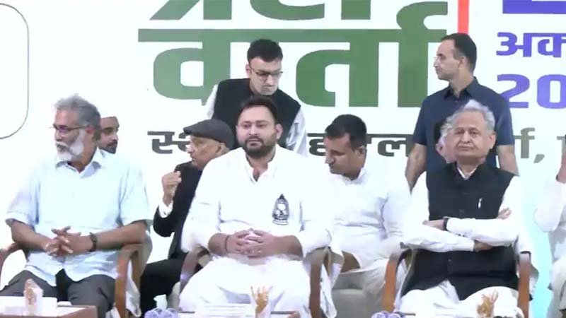 बिहार चुनाव को लेकर महागठबंधन ने आज एक साझा प्रेस कॉन्फ्रेंस की। तमाम अटकलों पर विराम लगाते हुए महागठबंधन ने बिहार विधानसभा चुनाव में तेजस्वी यादव को अपना मुख्यमंत्री चेहरा घोषित कर दिया है। राजस्थान के पूर्व मुख्यमंत्री और कांग्रेस के वरिष्ठ नेता अशोक गहलोत ने गठबंधन की तरफ से आयोजित एक संयुक्त संवाददाता सम्मेलन में आज यहां राष्ट्रीय जनता दल (राजद) के नेता तेजस्वी प्रसाद यादव को महागठबंधन का मुख्यमंत्री चेहरा घोषित किया। इस घोषणा के समय घटक दलों के प्रमुख नेता भारत की कम्युनिस्ट पार्टी मार्क्सवादी लेनिनवादी (भाकपा-माले) के दीपंकर भट्टाचार्य, मार्क्सवादी कम्युनिस्ट पार्टी (माकपा) के ललन चौधरी और विकासशील इंसान पार्टी (वीआईपी) के मुकेश सहनी उपस्थित थे। (वीआईपी) के मुकेश सहनी को उपमुख्यमंत्री का चेहरा घोषित किया गया। अशोक गहलोत ने अपने संबोधन में कहा कि उपमुख्यमंत्री पद के लिए और भी नाम सामने आ सकता है।