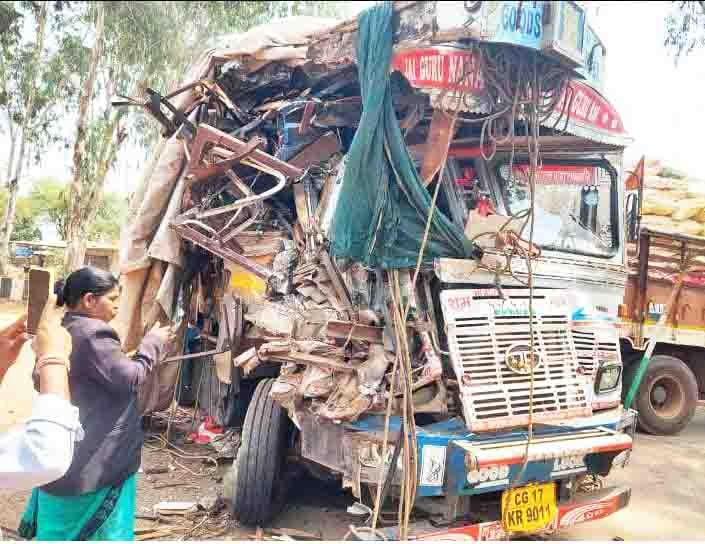 दो ट्रक आपस में भीड़े, एक चालक की मौत, दूसरा रायपुर रेफर