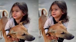 फिर मां कहती है इसको खाना नहीं मिलेगा। फिर बच्ची कहती है ये मेरा दोस्त है हट जाओ। बच्ची उसे गोदी में उठाने की कोशिश कर रही है और वह कहती है ये गोदी नहीं आ रहा है। कुत्ता बिल्कुल शांत है और बच्ची उसके साथ मस्ती कर रही है।